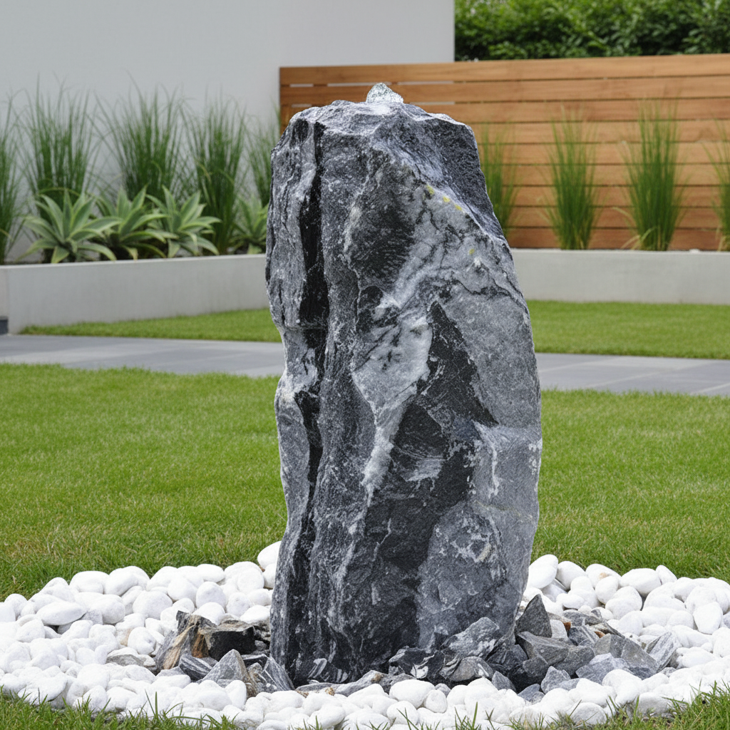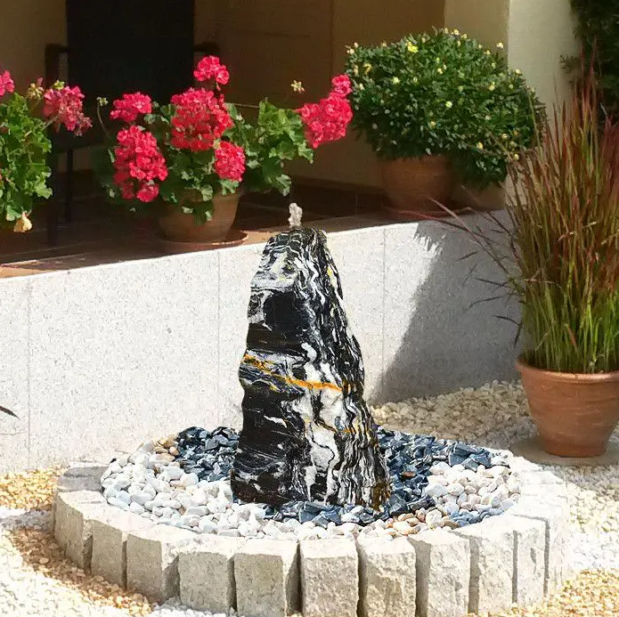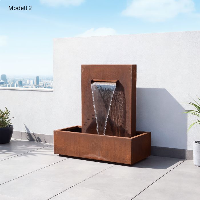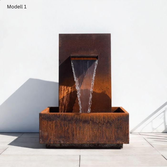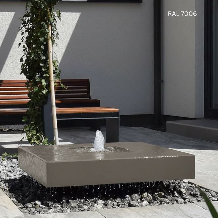 Ein flacher Quader als minimalistischer Designerbrunnen oder Gartenbrunnen kombiniert mit einem im Boden versenkten Glasfaserkunststoff-Becken zur Verwendung als Wasserspiel und Springbrunnen. Erhältlich in diversen Größen und RAL Farben bietet dieser Outdoorbrunnen einen großen Freiraum an Individualität und Gestaltung. Mit der made-in-Germany Qualität und 36 Monaten Garantie ist dieser wartungsfreie Quellbrunnen eine langfristige Investition für zeitloses Gartendesign ohne externe Wasserzufuhr.