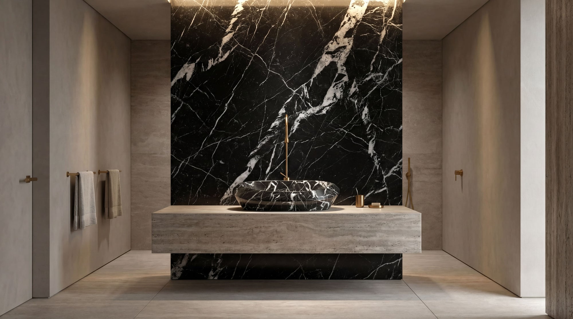 Intensives Tiefschwarz mit weißen Adern - der klassische Luxusstein