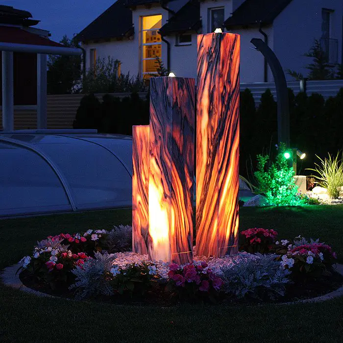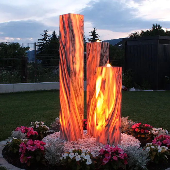 Drei in der Höhe abgestufte Sölker Marmorsäulen des Gartenbrunnens Sölker Marmor Belle Combinaison bilden eine Skulptur, die besonders in den abendlichen Stunden eine magische Faszination auf...Normalpreis Ab €4.795,00Angebotspreis Ab €4.795,00 NormalpreisStückpreis / pro -