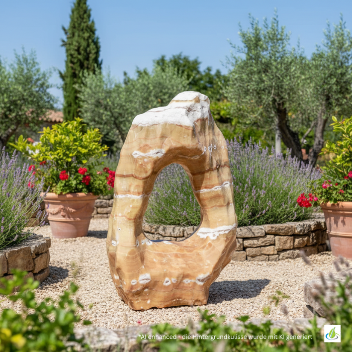 Optional kann dieser Dekostein auch zu einem Brunnen umfunktioniert werden. Bei Interesse, bitte per E-Mail eine Anfrage stellen.