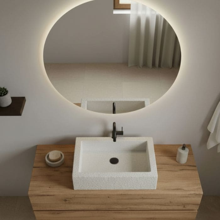 Das Kalkstein Waschbecken von Revisage ist ein zeitloses Designelement, das Ihrem Badezimmer eine elegante und natürliche Ästhetik verleiht. Aus hochwertigem, süd-französischem Kalkstein gefertigt, besticht das Waschbecken durch seine Langlebigkeit und Widerstandsfähigkeit gegen tägliche Beanspruchung. Mit kompakten Abmessungen von 60 cm Breite, 15 cm Höhe und 40 cm Tiefe fügt sich das Becken harmonisch in verschiedenste Badezimmerstile ein - vom minimalistischen Gästebad bis zum luxuriösen Privatbad, sowie im Außenbereich.
