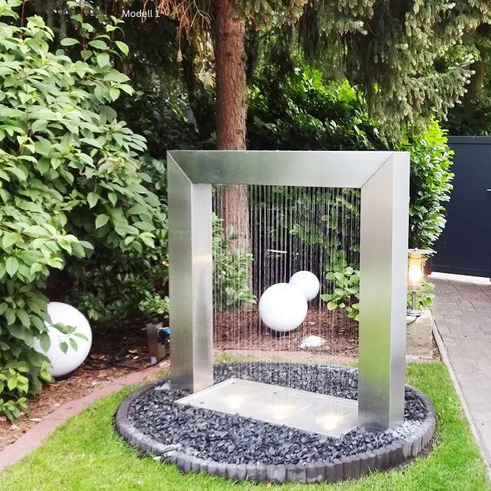 Edelstahl Designbrunnen Wassertor Eckig