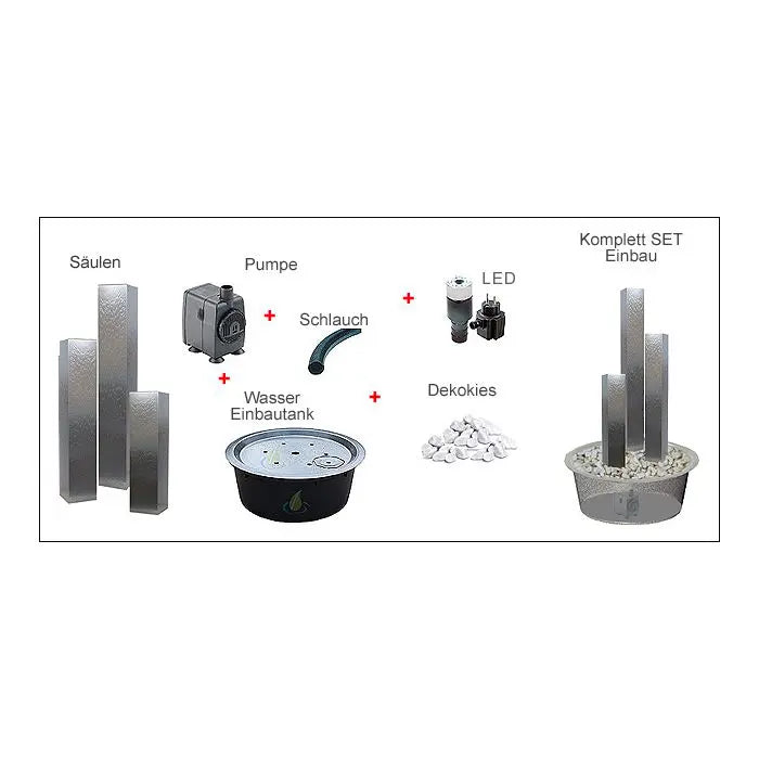 Edelstahl Säulenbrunnen Eck 3er Set