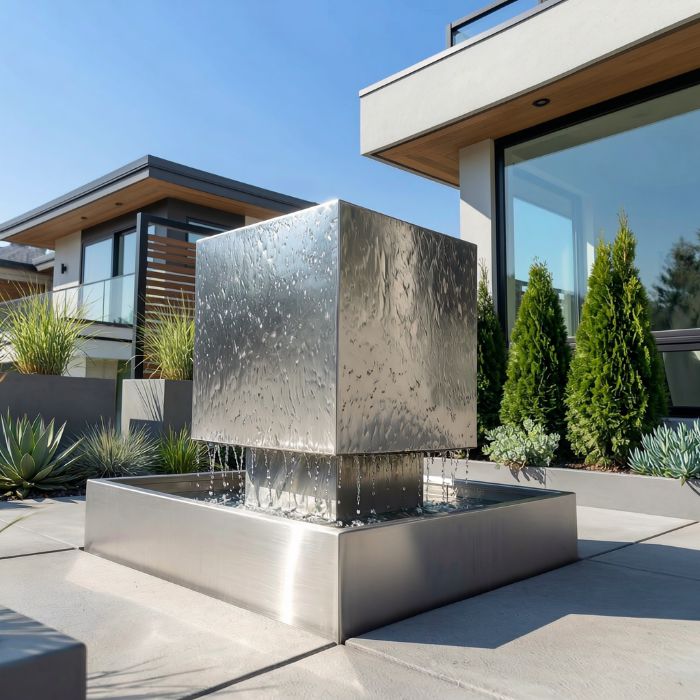 Edelstahl Terrassenbrunnen Cubus