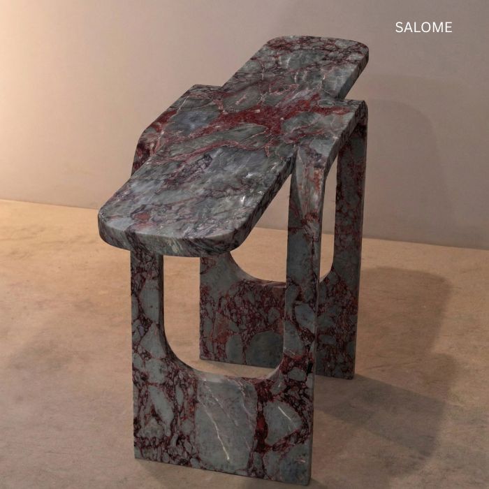 The premium marble console table Leo stands out as an architectural design piece - carved from a single block of marble with curved contours and organic forms, it becomes an eye-catching feature in upscale living spaces and exclusive interiors. Distinctive veining and fine natural stone varieties reveal the highest level of material authenticity and luxurious quality, while dual support structures create visual dynamism. Handcrafted according to Italian master craftsmanship -7-axis robotic machining and manual finishing by experienced artisans guarantee masterful craftsmanship. Available in various premium natural stone combinations (147x42cm, height 80cm) - the ideal statement piece for collectors of high-quality designer furniture with timeless elegance.