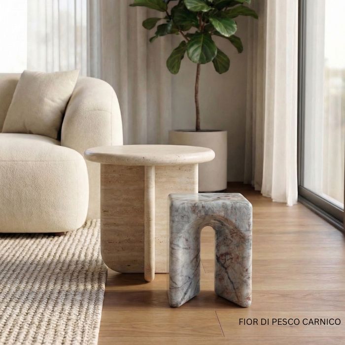 The Premium Marble Stool Asger stands out as a design statement - crafted from selected marble blocks with organic shapes, it becomes an eye-catching feature in upscale living spaces and exclusive interiors. Distinctive marble textures reveal the material’s authentic character and luxurious quality, while the openwork geometry creates a sense of visual lightness. Handcrafted according to Italian master craftsmanship - 7-axis robotic machining and manual finishing guarantee masterful quality. Available in various premium natural stone combinations (35x40 cm, height 45 cm) - the ideal design accessory for collectors of high-quality luxury furniture.