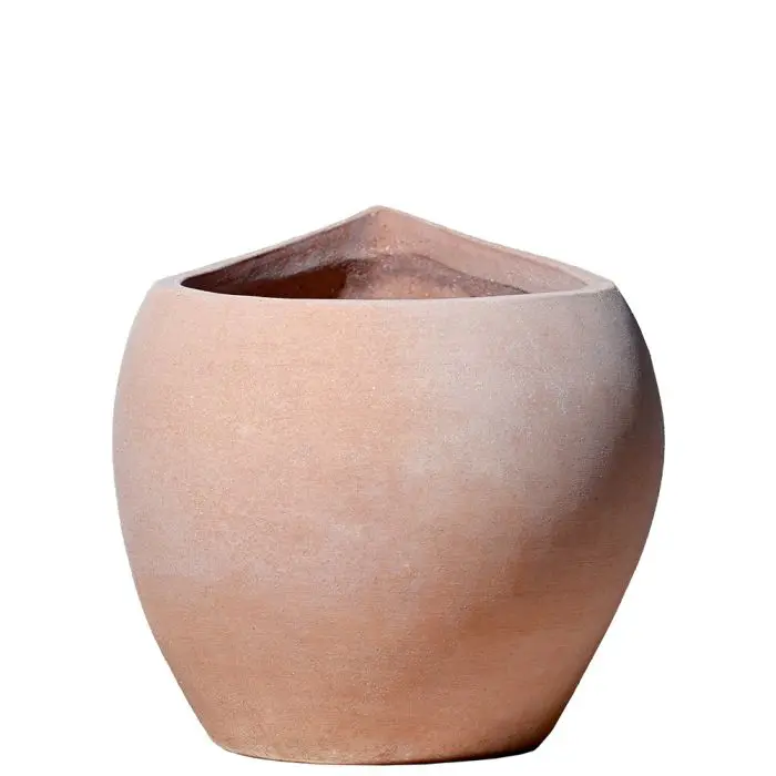 Sa forme élégante et abstraite crée une harmonie visuelle et optimise l'utilisation du terreau par rapport à son volume. Ce pot offre également une résistance exceptionnelle au vent. Fabriqué artisanalement en argile d'Impruneta, il résiste au gel jusqu'à -30 °C. Sa forme reste inchangée au fil du temps, ce qui lui confère une grande durabilité. L'excellente respirabilité, l'isolation thermique et la lente diffusion de l'humidité lors de l'arrosage, propres à la terre cuite, favorisent la croissance saine des racines et des plantes. Ce pot conserve son aspect attrayant en toutes saisons.