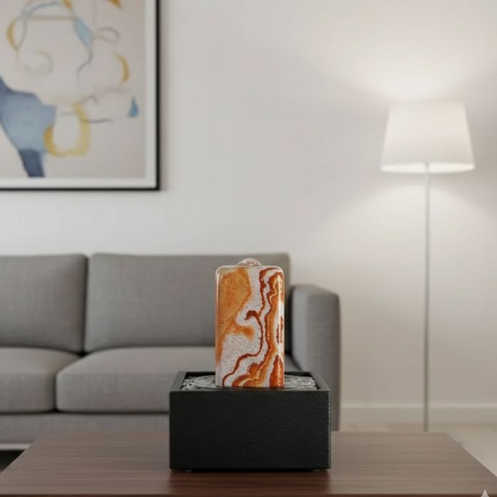 Der Design Tischbrunnen Picco ist ein kleiner Naturstein- und Zimmerbrunnen, der mit leise fließendem Wasser für entspannte Atmosphäre im Wohnzimmer, Büro oder andere Arten von Räumlichkeiten sorgt. Als pflegeleichter, energiesparender Zimmerbrunnen vereint er stilvolles Design mit hochwertiger Verarbeitung und wird so zum dekorativen Wohnaccessoire. Mit harmonischen Proportionen und edler Steinoptik setzt der Picco jeden Raum wirkungsvoll in Szene und ist die ideale Tischdekoration.