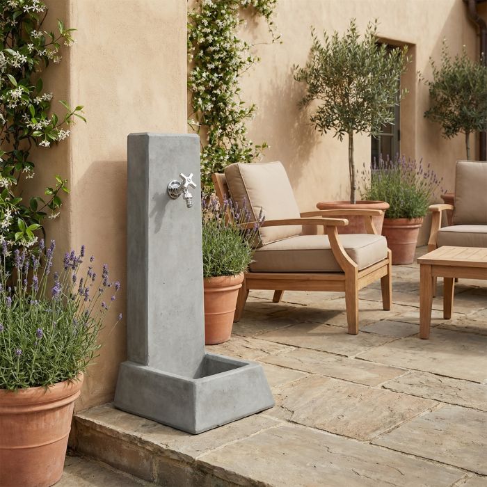 Die Gartenbrunnen Wasserentnahmestelle Malmö ist eine moderne Wasserzapfstelle für den Garten, die mit klarer, minimalistischer Form ein stilvolles Highlight im Außenbereich setzt. Gefertigt aus robusten Materialien überzeugt dieser Gartenbrunnen durch Stabilität, Langlebigkeit und eine hochwertige Optik. Die Wasserentnahmestelle ist eine praktische und elegante Lösung für die moderne Gartenbewässerung.