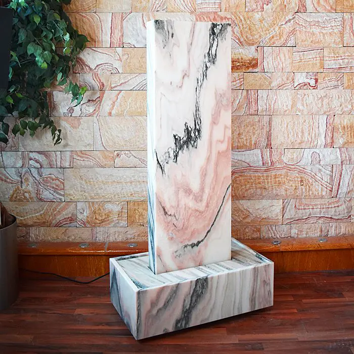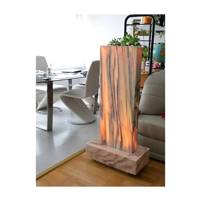 Der Lichtbrunnen Sölker Marmor Loin begeistert mit der Kombination aus hochwertigem, kristallinem Sölker Marmor, stimmungsvoller Beleuchtung und sanftem Wasserlauf und sorgt damit für eine entspannende Atmosphäre in Wohn- oder Büroräumen. Durch das warme Licht, das den Naturstein von innen zum Strahlen bringt, wird jeder Raum in ein harmonisches Ambiente verwandelt, ideal für Ruhe, Luftbefeuchtung und stilvolle Wohnkultur. Mit seiner einzigartigen Maserung und handwerklicher Fertigung setzt dieser Lichtbrunnen edle Akzente in jedem Interieur.