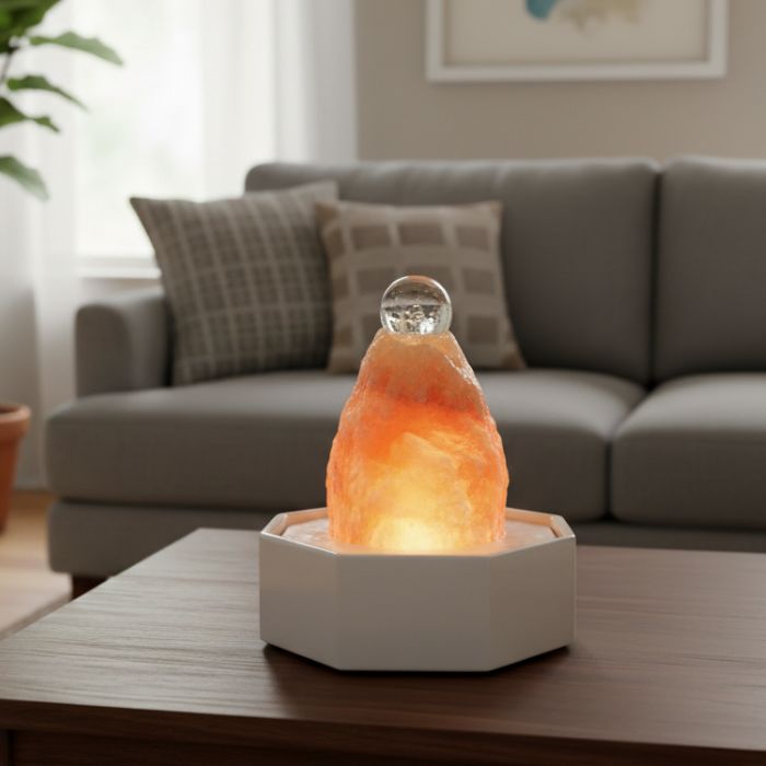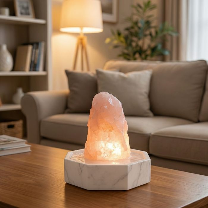 Der Zimmerbrunnen Luxur Edelstein Marmor 8-eck kombiniert eine hochwertige Natursteinwanne in der Form eines Achtecks mit einem edlen Quellstein zu einem Edelsteinbrunnen, der Wohnräume in eine Oase der Ruhe verwandelt. Dank leiser Technik und sanftem Wasserlauf entsteht ein beruhigendes Ambiente mit elegantem Design. Dieser exklusive Zimmerbrunnen ist ideal, um Wohn- oder Arbeitsbereiche aufzuwerten und ein harmonisches Raumklima zu schaffen.